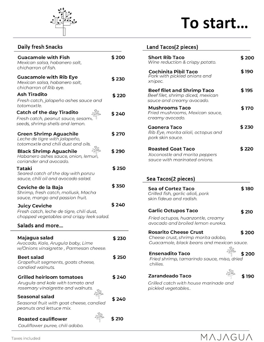 Introducing the menu of MAJAGUA, a hidden gem nestled in the picturesque Marina Costa Baja, La Paz, Mexico. This fine-dining restaurant offers a culinary voyage that celebrates local freshness and creativity. Each dish is crafted from seasonal ingredients, ensuring a delightful experience whether you're indulging in grilled shrimp, grilled fish, or their much-praised smash burger. Guests rave about the Chile Toreados and unique cocktail creations from their talented mixologist.